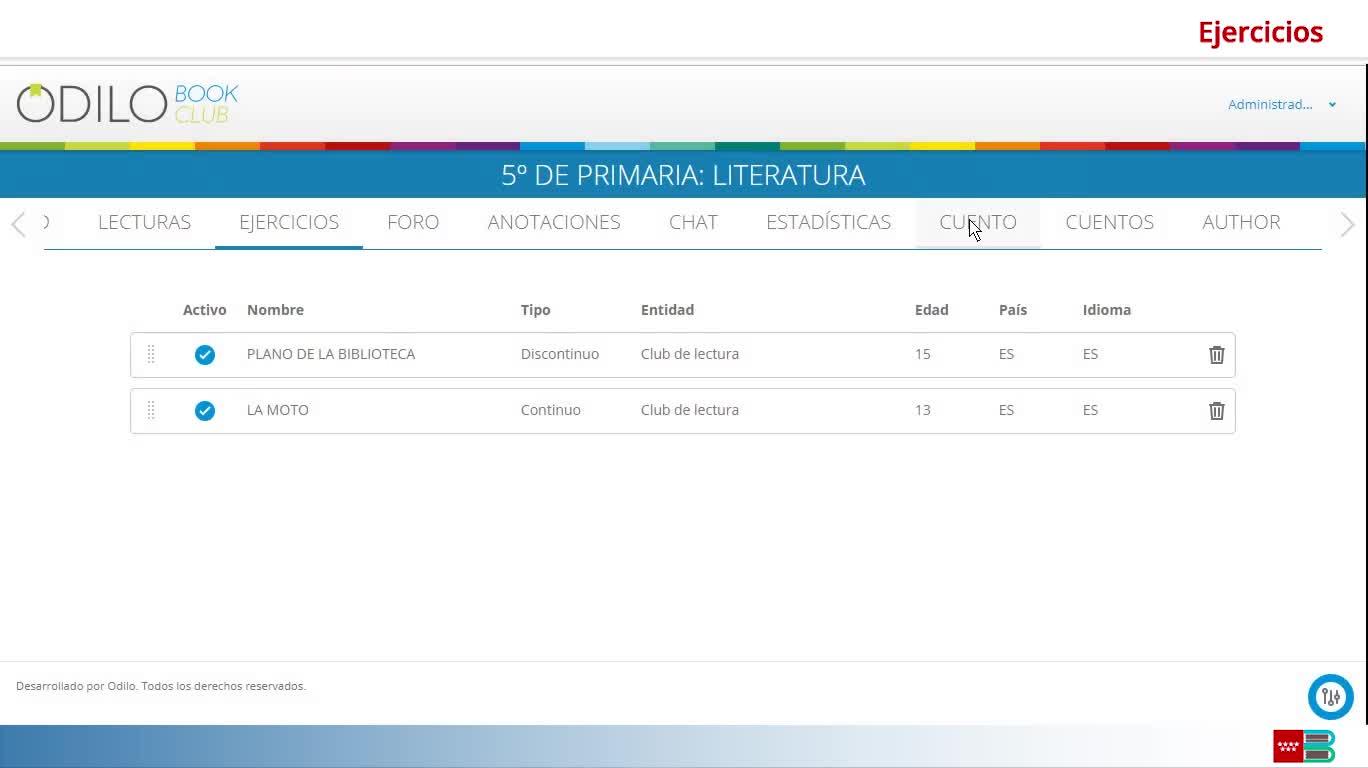 Una vez dentro, entras en ejercicios. Gracias a esta funcionalidad, el profesor puede proponer cualquier tipo de ejercicio estandarizado de PISA, ejercicios de comprensión lectora diseñados por el propio profesor o cualquier tipo de ejercicio que se estime oportuno.