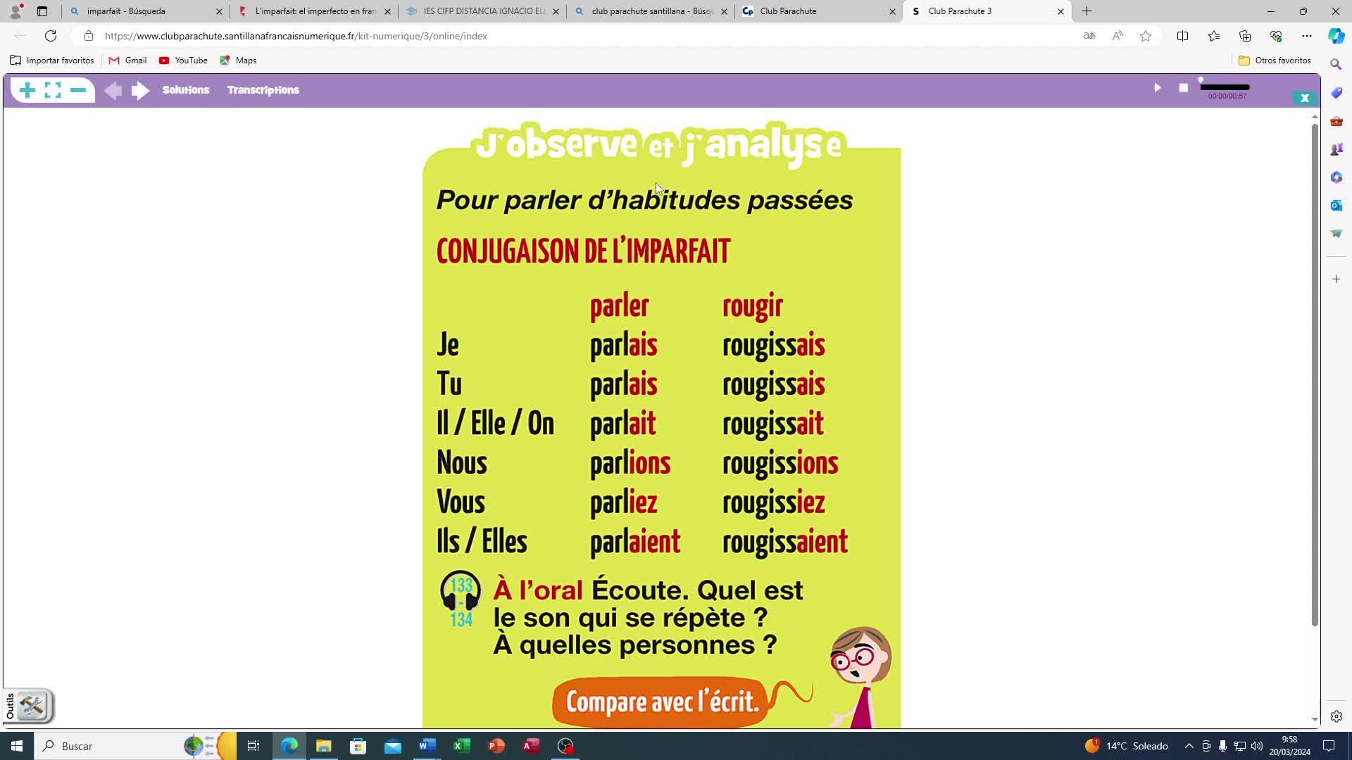 ¿Vale? En estos dos casos parece que es, mirad, en el verbo parler, los verbos de la primera conjugación