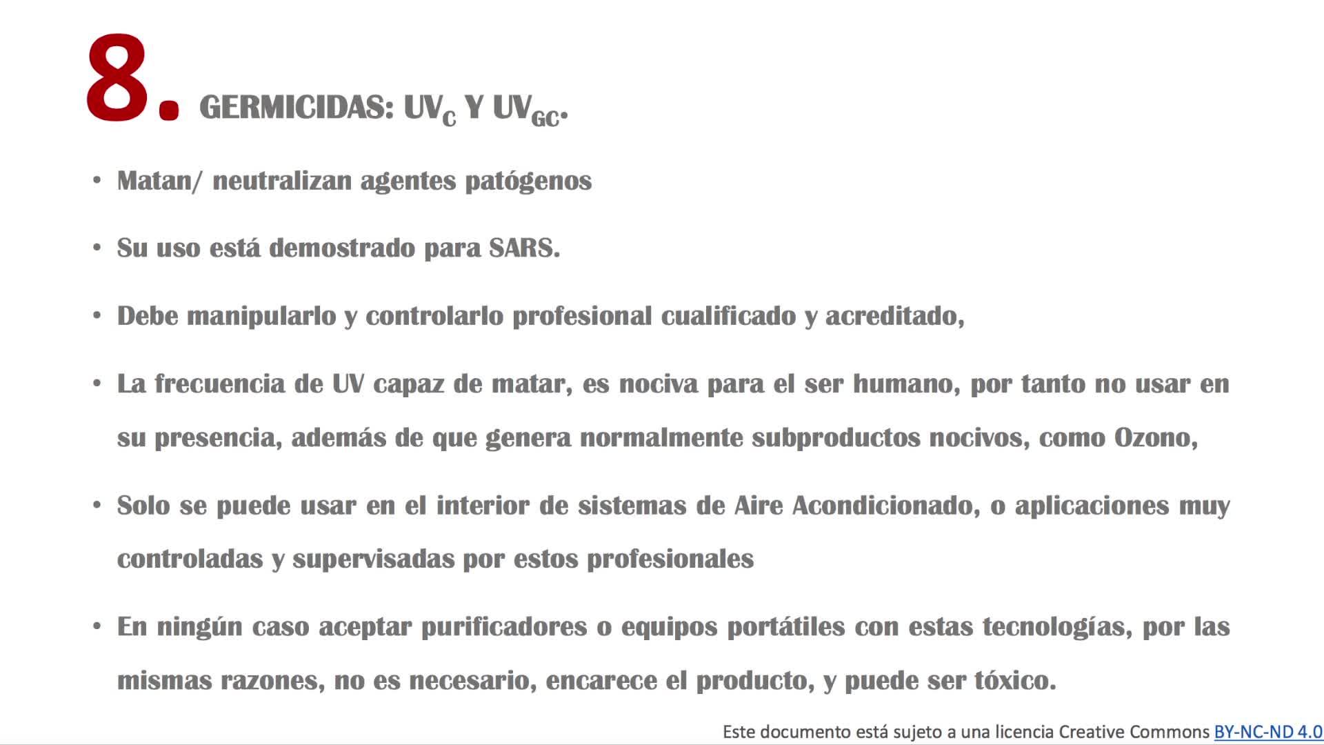 Vale, en el caso de los ultravioletas, que ahí denominamos el ultravioleta C y el ultravioleta GC, que son los rangos de frecuencia en los que el ultravioleta resulta eficaz para acabar con el SARS-CoV-2, matan y neutralizan esos agentes patógenos.