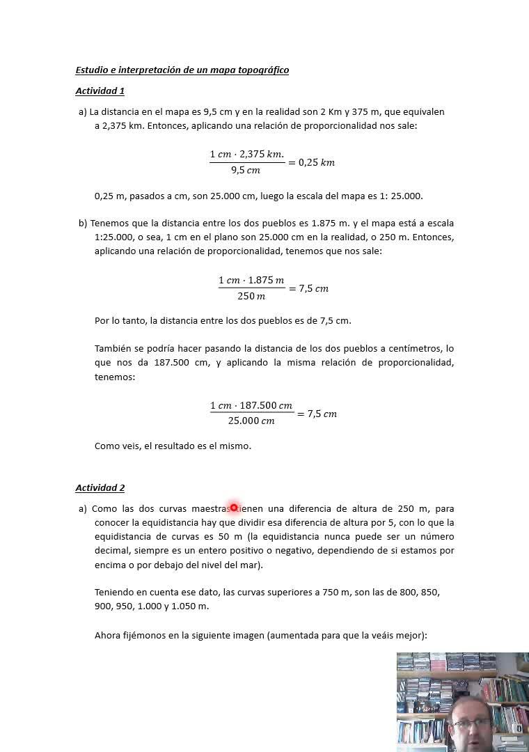 ¿De acuerdo? Vale, entonces sí, ya me saldría bien, ¿de acuerdo? Entonces está correcto, sería esta la escala del mapa, 1,25.000, ¿vale? Bueno, y ahora lo que nos está diciendo es justo al revés, nos dice que la distancia entre dos pueblos es 1.875 metros y un mapa está a escala 1,25.000, o sea, un centímetro en el plano, son 25.000 centímetros en la realidad, o 250 metros, ¿vale?