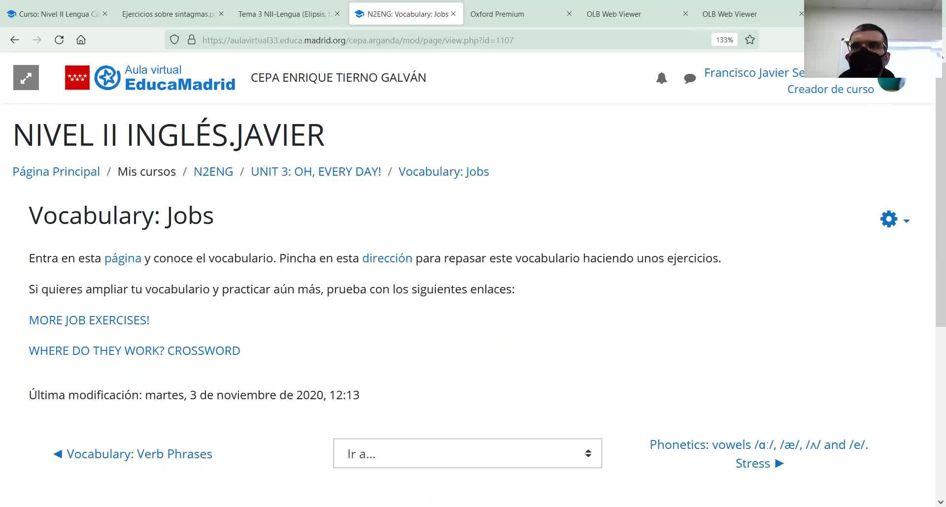 O, pues sí, o I'm studying, I'm at university. Se puede anexar, sin problema. More questions? No. Bueno, pues de lo que es el trabajo por aviso no habría que decir mucho más.