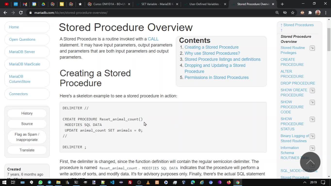 MariaDB, MySQL - Programación - PROCEDURE - Contenido educativo