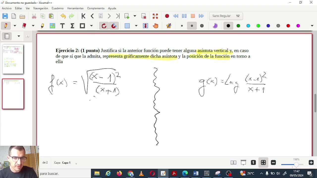 Examen Continuidad y límites - Ejercicio de dominio y asíntotas verticales