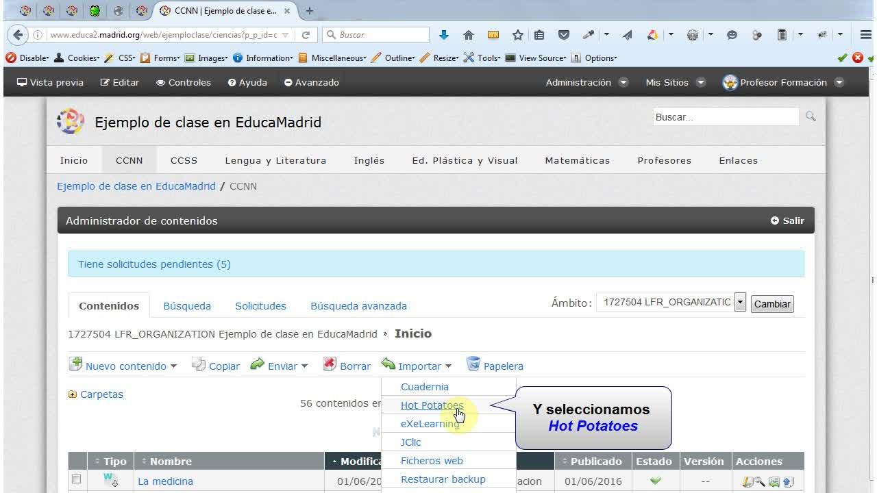 Cómo importar un contenido realizado con Hot Potatoes en EducaMadrid.