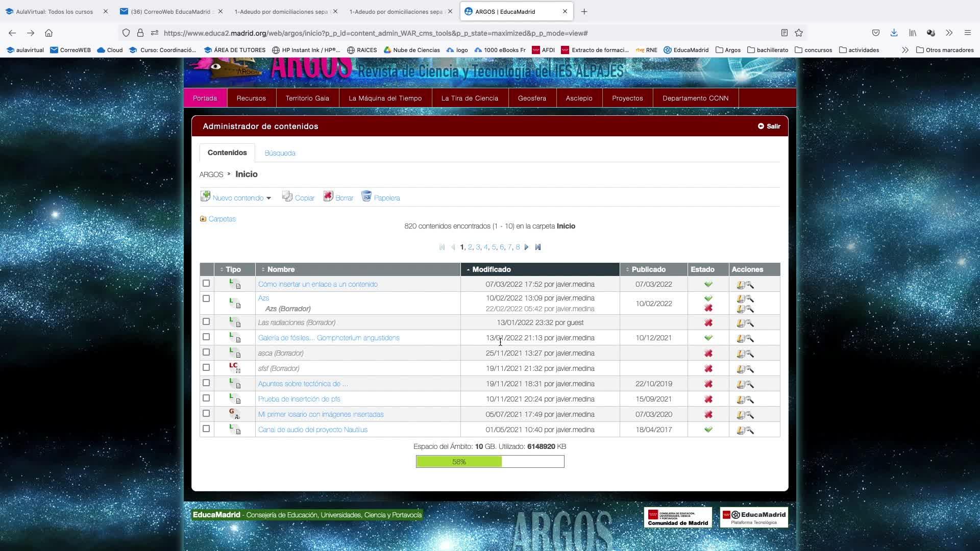 Volveríamos de nuevo al administrador de contenidos y nos situaríamos, veis que tenemos dos pestañas, el libro que estoy haciendo y aquí busco el contenido que quiero hacer.