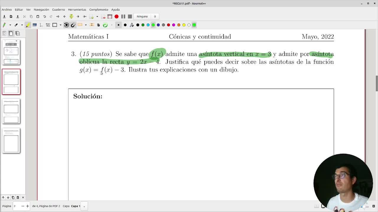 un poquitín esto. Vamos a mover esto. No quiere. Vamos a mover esta parte aquí. Entonces ahora puedo concluir aquí. De asíntotas oblicuas, ¿qué pasaría? Pues que f de x menos 3,
