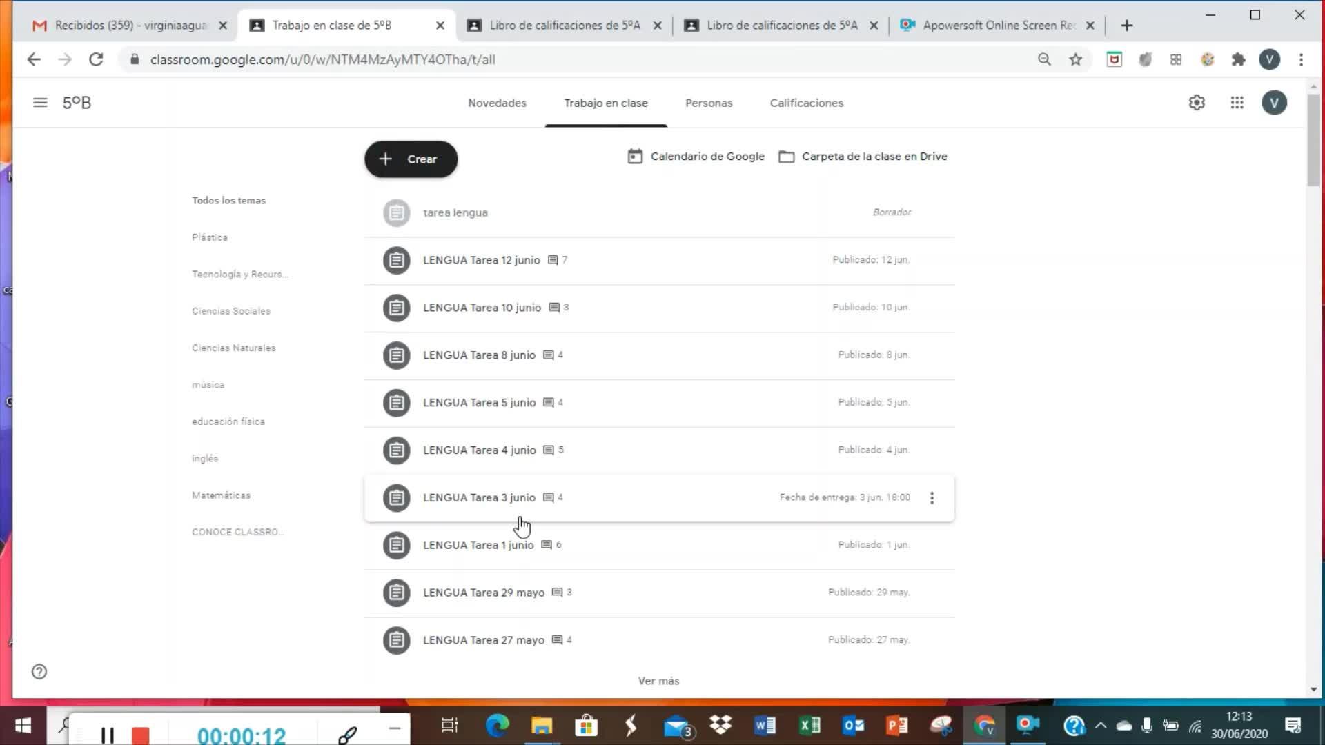 Vamos a corregir tarea, para eso vamos a la clase que nos interese corregir, vamos a trabajo en clase, en este caso vamos a corregir esta tarea de lengua.