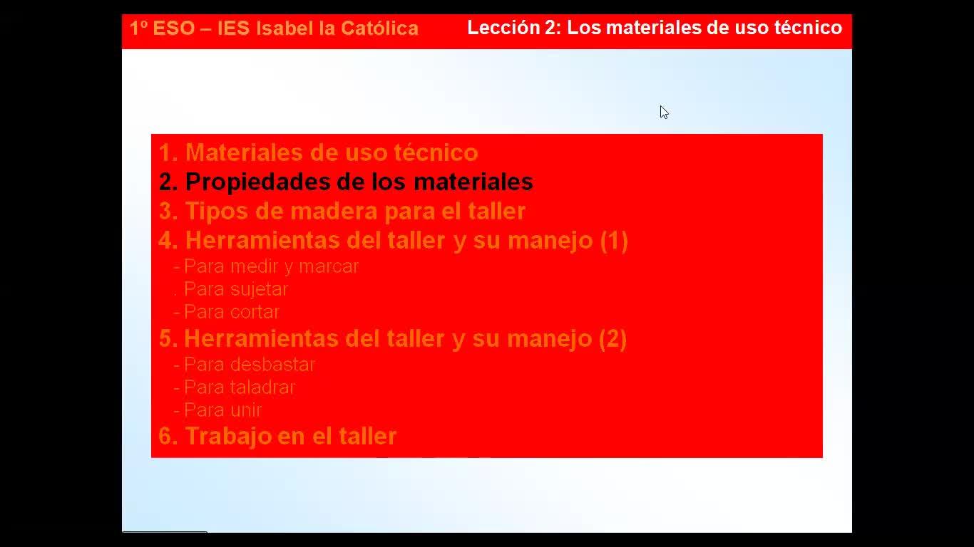 1º ESO / Tema 2 -> Punto 2 - Propiedades de los materiales - Contenido educativo