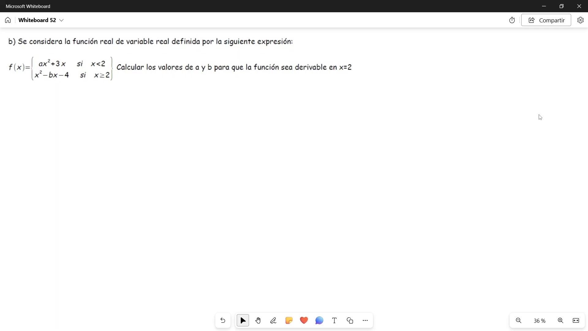 para que la función sea derivable en x igual 2.