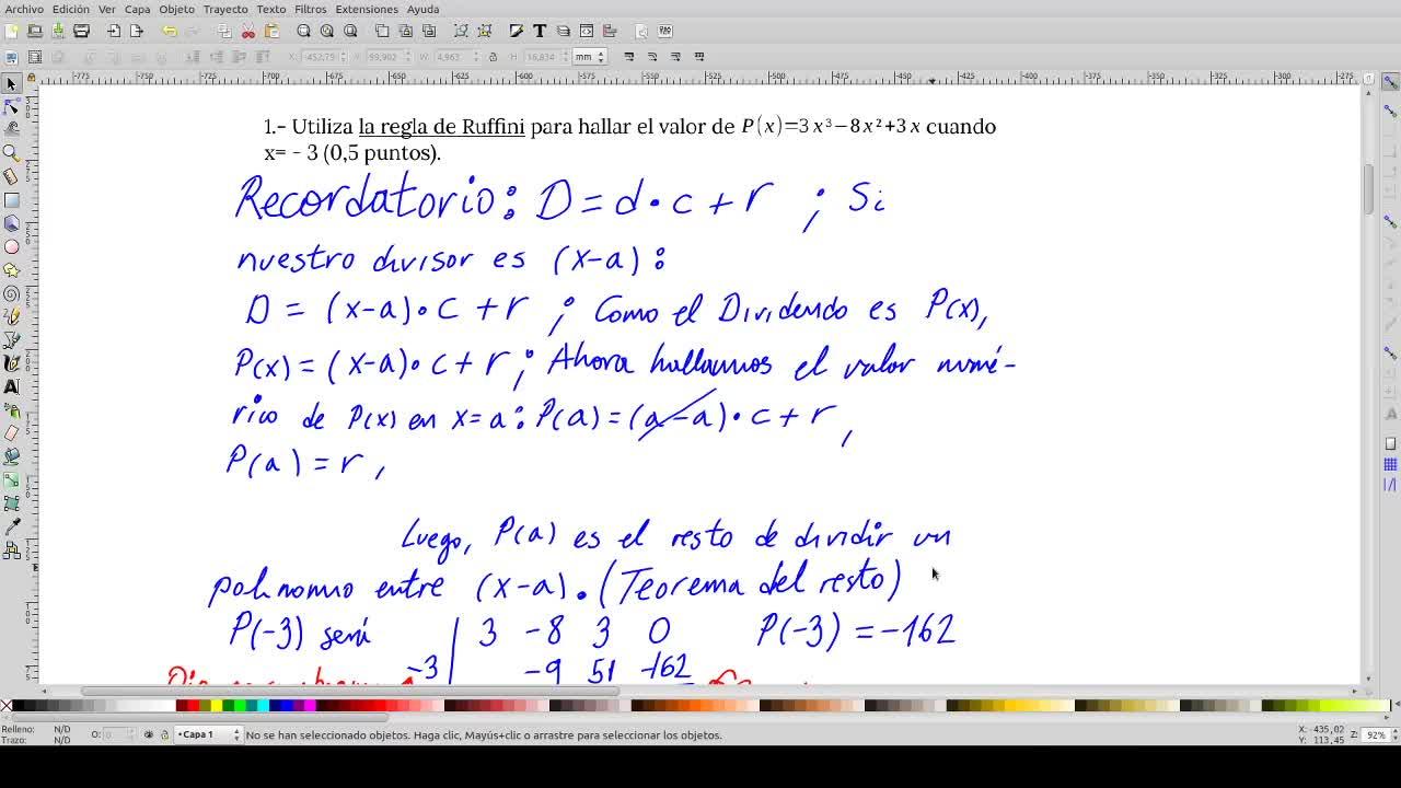 El valor numérico del polinomio en a es el resto de dividir un polinomio entre x menos a, ¿vale?
