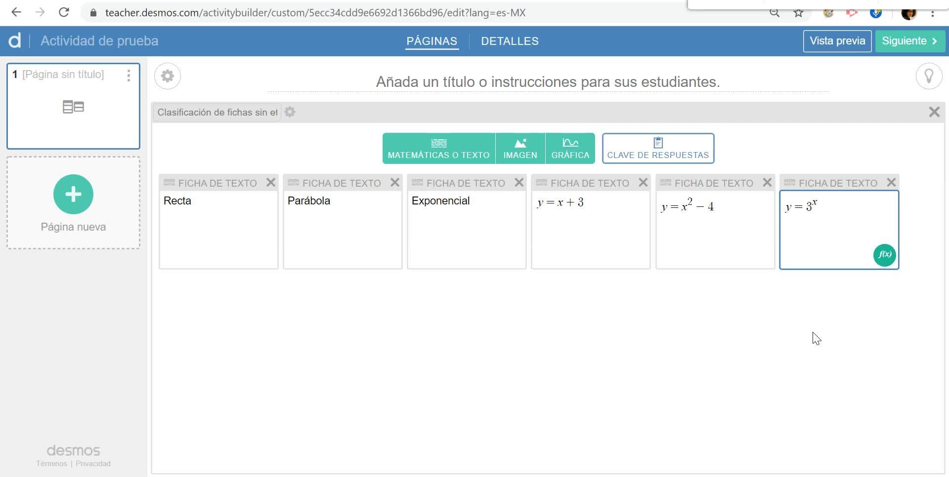 Desmos: Creación de actividad con cartas