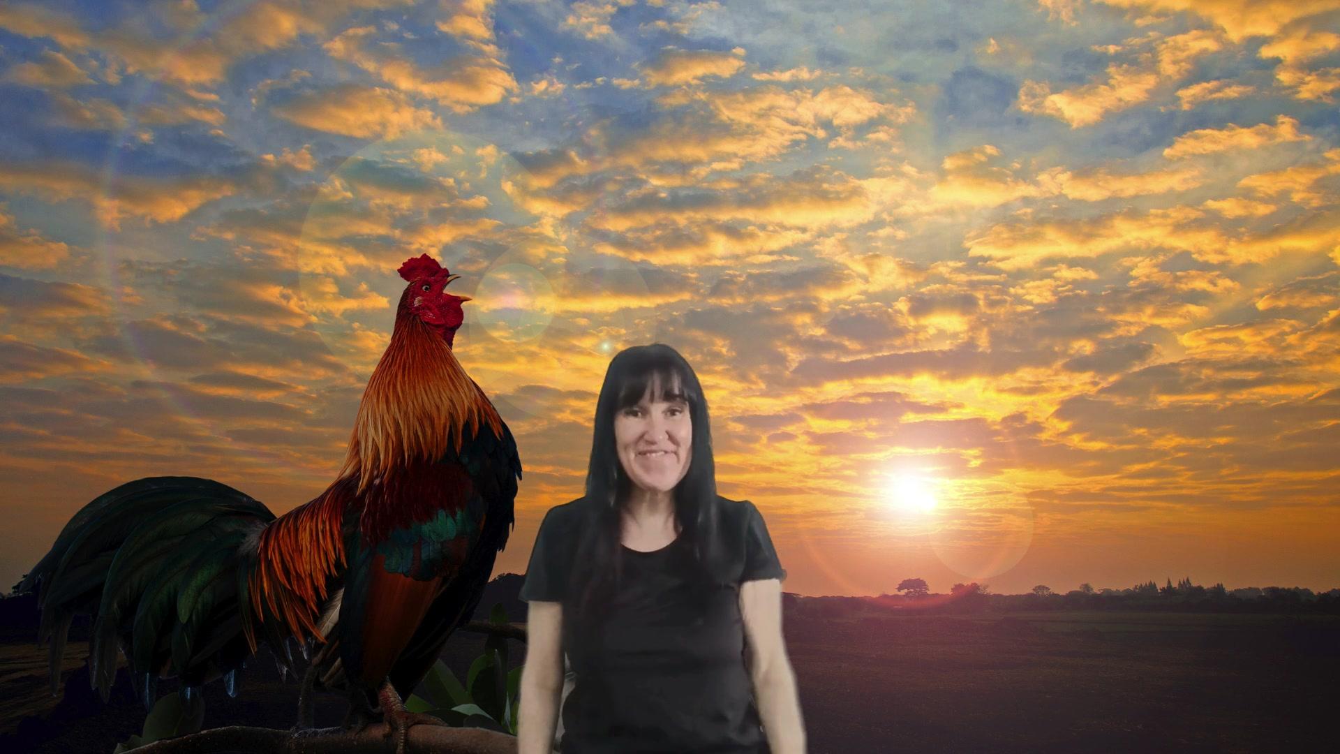 Buenos días, canto yo, el sol dice hola, la luna dice adiós, buenos días, canto yo, el gallo cantor es mi despertador.