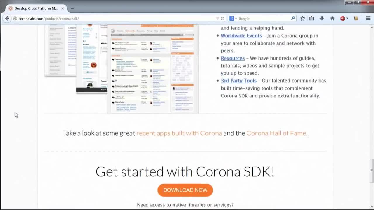 A pesar de que la plataforma Corona es de pago, el IDE básico para desarrollar juegos y el simulador lo podemos descargar de forma gratuita dentro de la web Corona SDK.