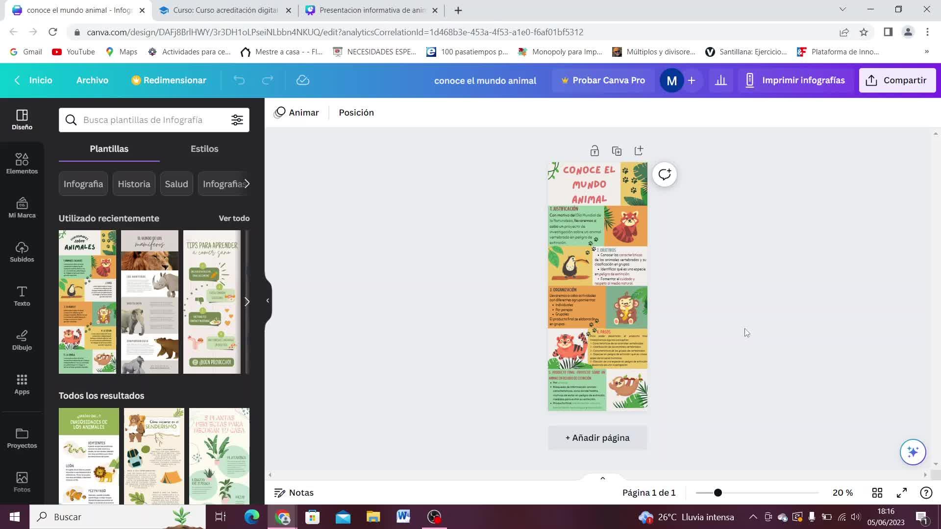 lo he diseñado con la aplicación de Canva y puesto que trata de los animales, cada una