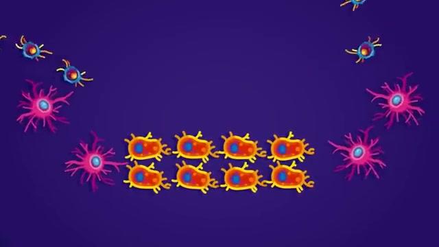 En cuestión de segundos, las enormes células se empiezan a atacar y matar sin piedad.