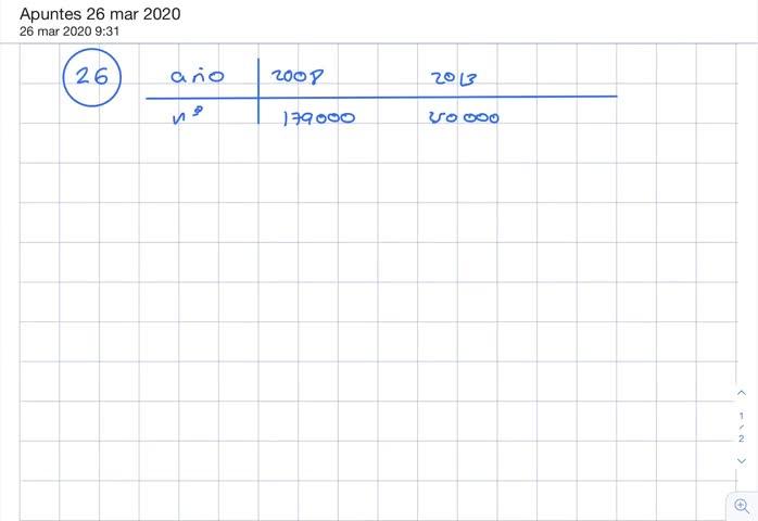 Ejercicio 26. La población de cierto municipio en el año 2008 fue de 179.000 habitantes y en 2013 fue de 250.000.