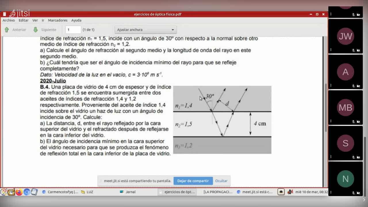 Bueno, pues venga, dice una placa de vidrio de 4 centímetros de espesor y un índice de refracción 1,5.