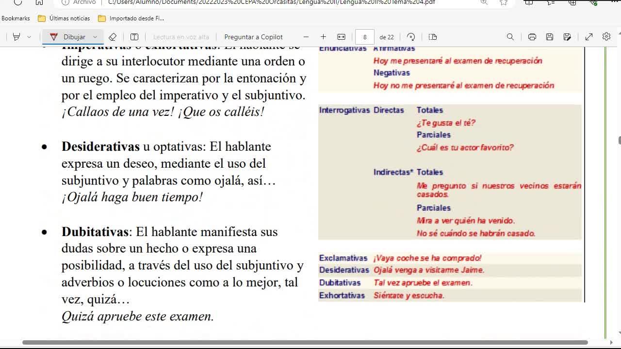 Lengua II Distancia Clase 38 20240205 - Clasificación de oraciones según actitud del hablante, estilo directo e indirecto - Contenido educativo