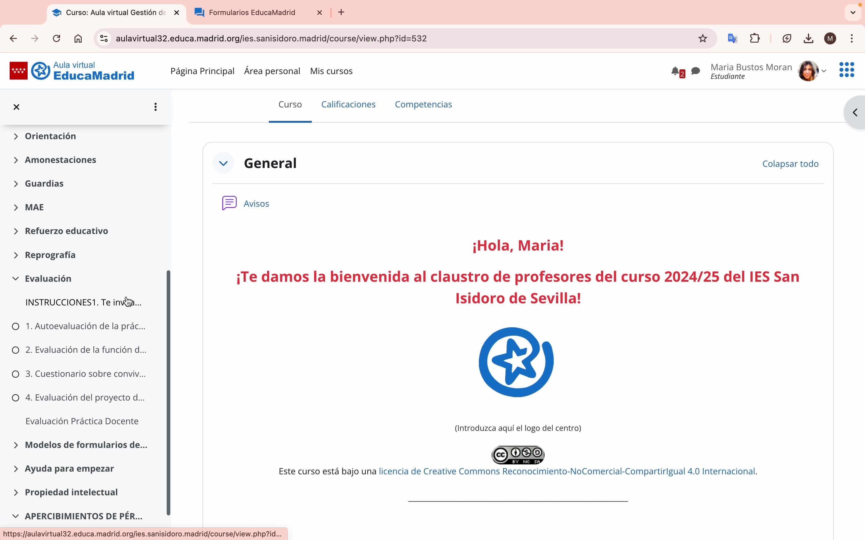 Entonces a la izquierda, que salen un montón de apartados, os metéis en el apartado de evaluación.