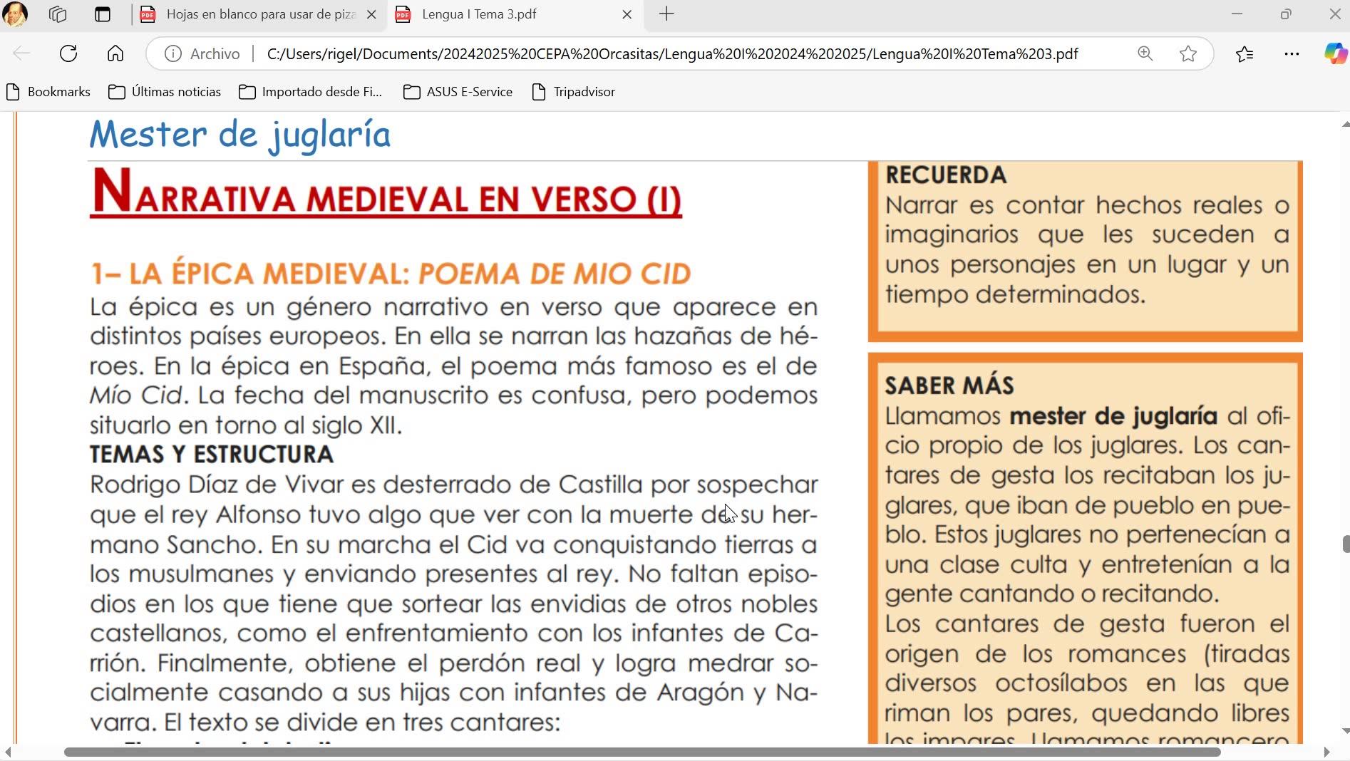 Lengua I Distancia Clase 32 20250210 - El cantar de Mío Cid - Contenido educativo