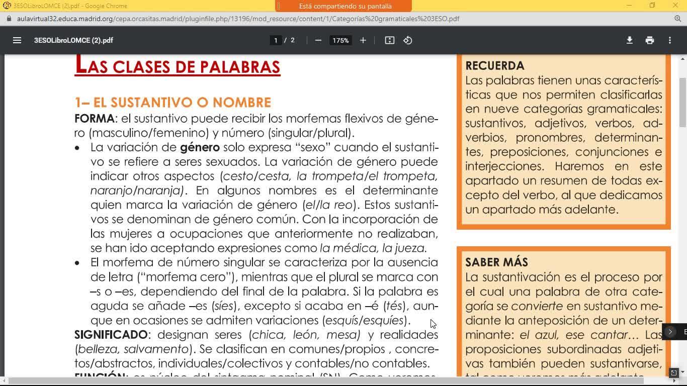 Y ahora estamos viendo análisis morfológico por categorías gramaticales, es decir, saber de qué tipo son las palabras, ¿no?