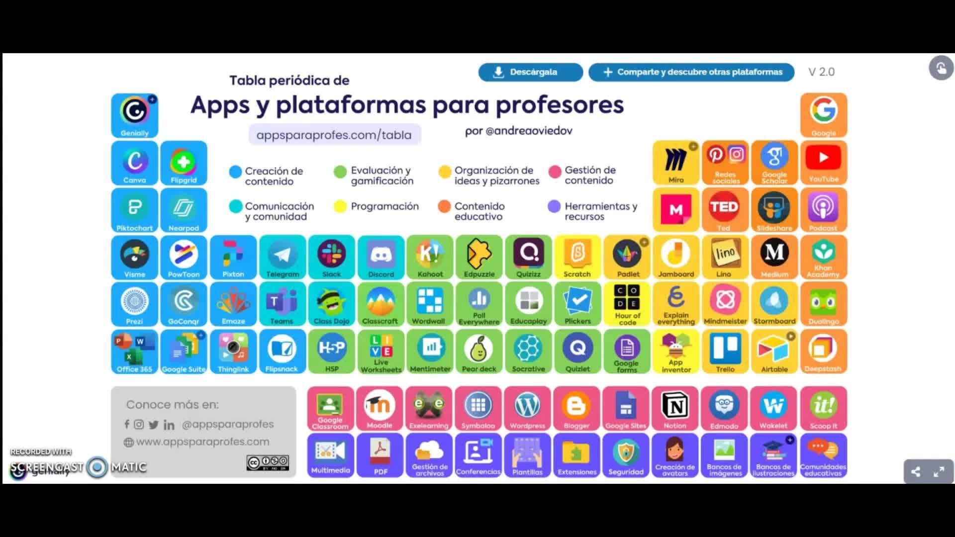 Voy a aprovechar para recordaros que compartí esta tabla periódica de las apps y plataformas para profes que no la he hecho yo.