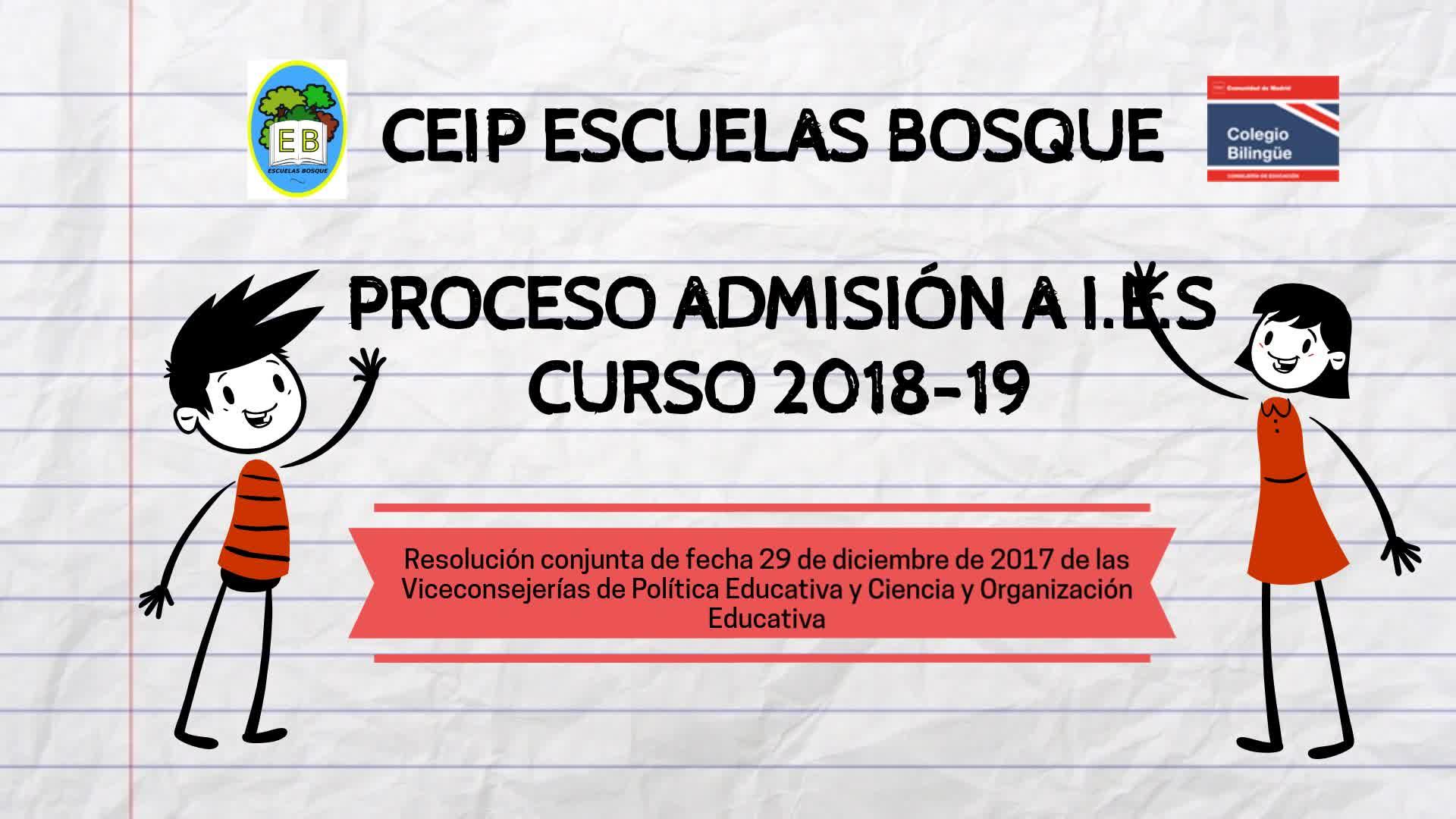 Proceso Admisión a Centros de Enseñanza Secundaria. Curso 2018.2019 CEIP Escuelas Bosque