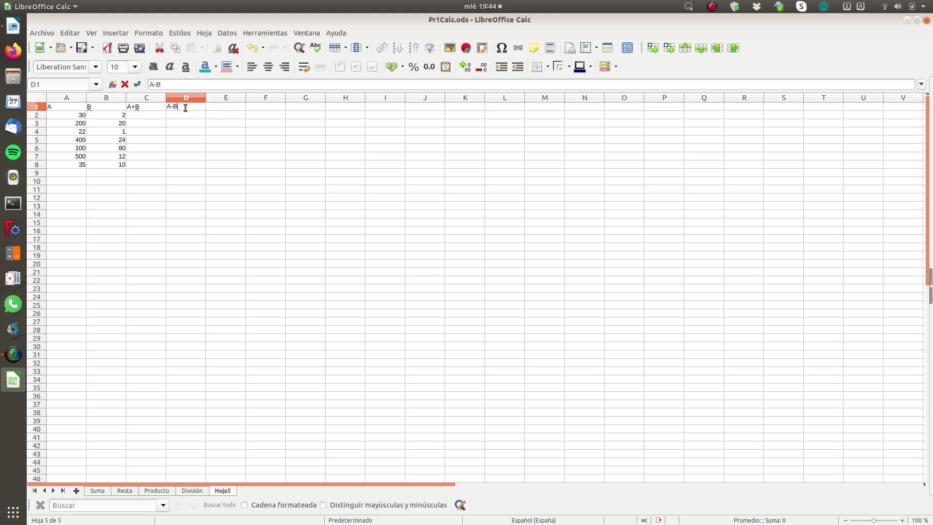 En este ejercicio se trata de hacer varias operaciones en la misma hoja.