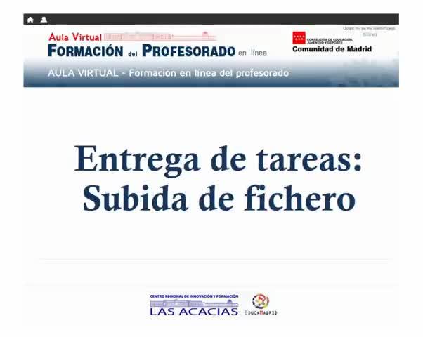 Vídeotutorial donde se explica cómo entregar una tarea del tipo "Subida de ficheros" al Aula Virtual de Formación del Profesorado.