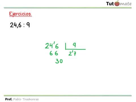 Como resumen, se divide normalmente y se coloca al cociente tantas cifras decimales como tiene el dividendo