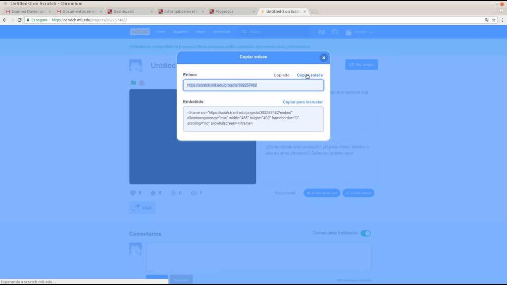Paso a paso cómo poder poner un enlace a tu programa de Scratch en el muro de clase.