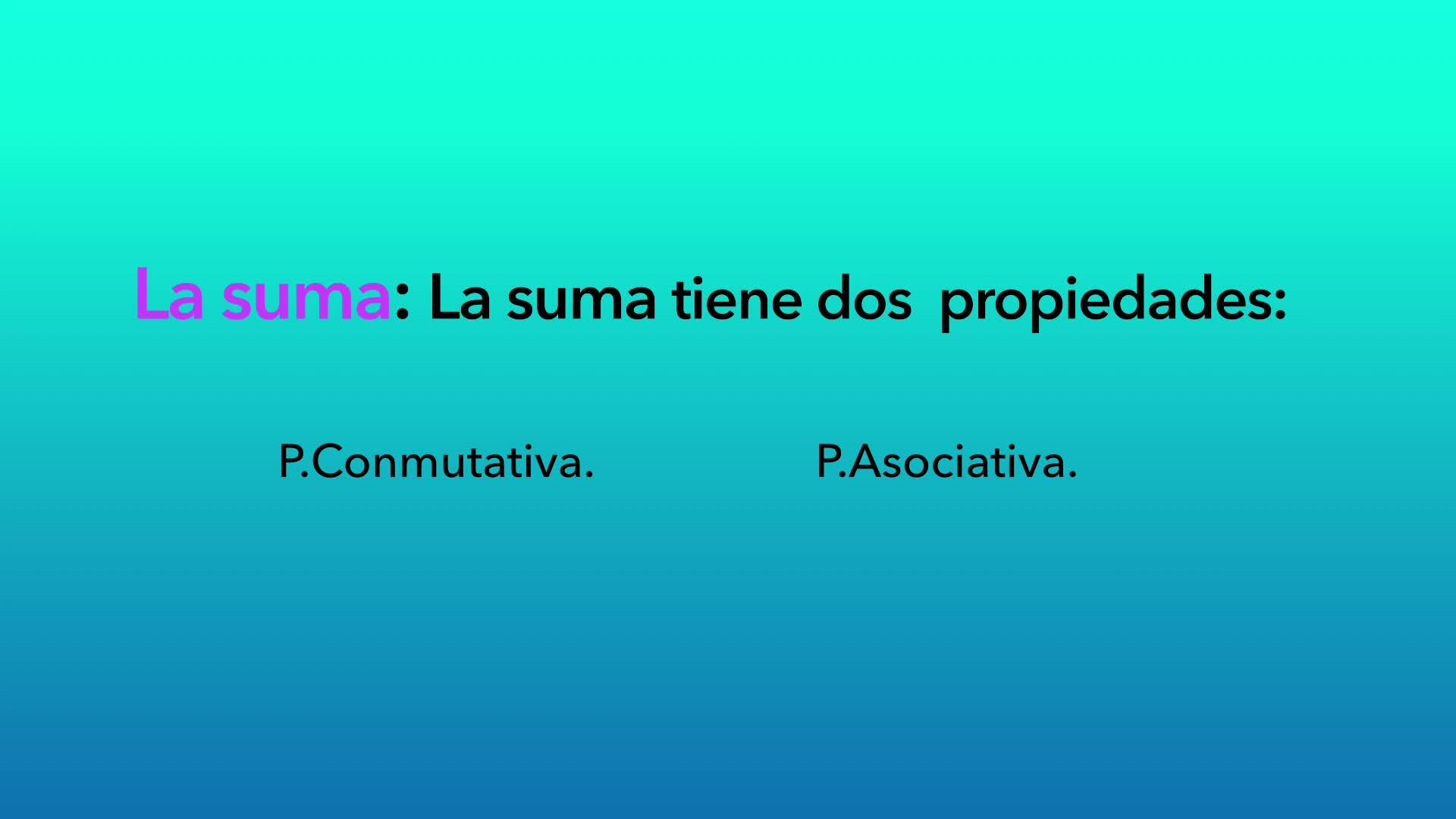 La suma tiene dos propiedades, propiedad comutativa y propiedad asociativa