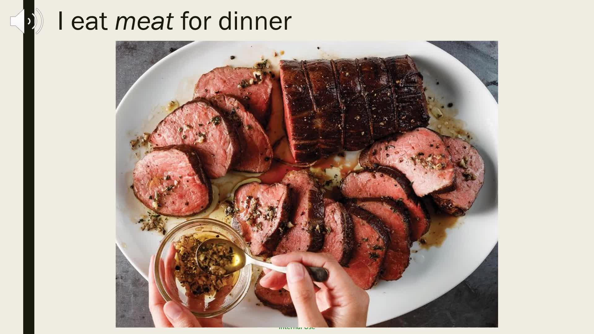 I eat meat for dinner.