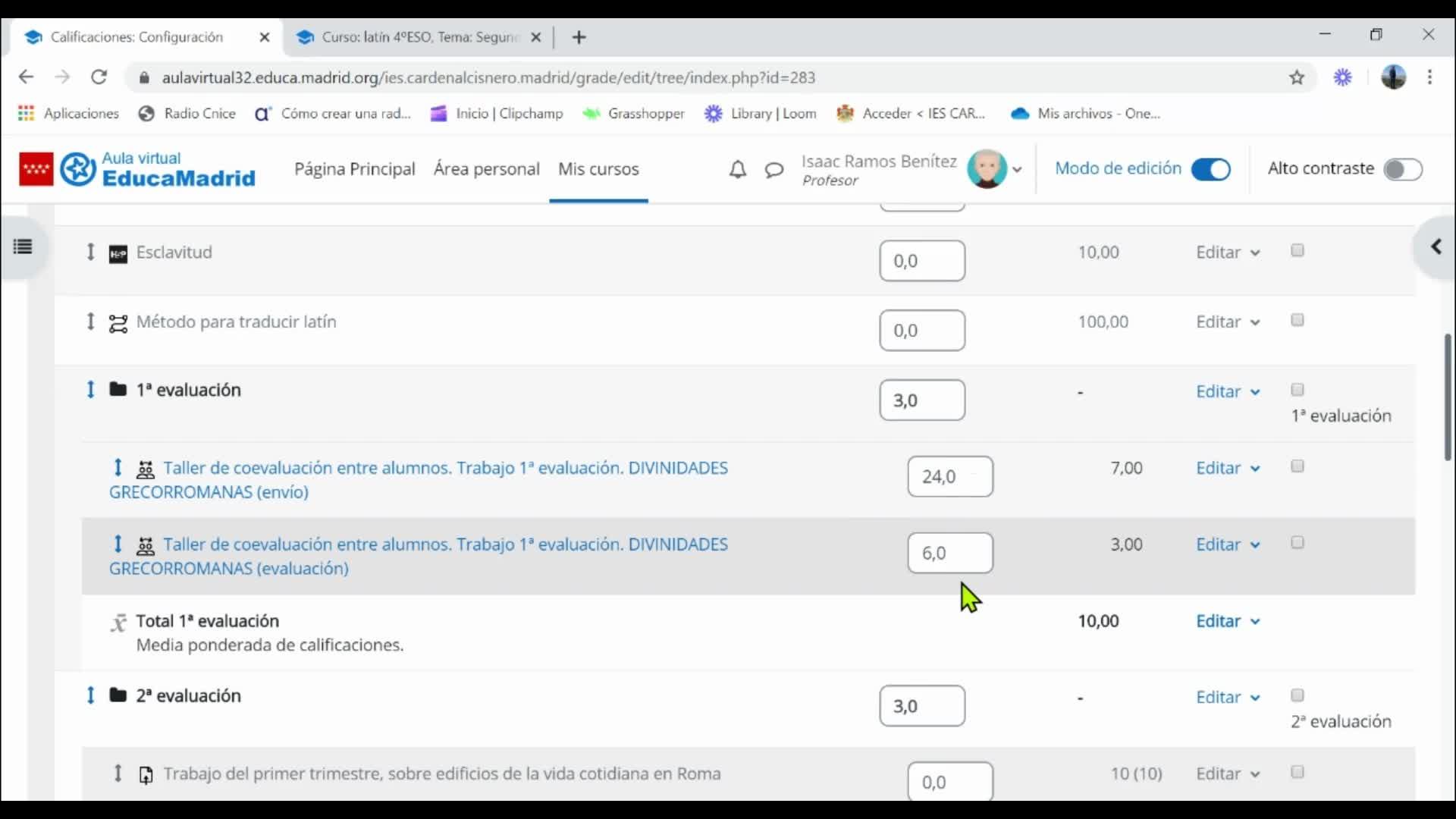 y hay que dar también una ventana temporal para que los alumnos evalúen el trabajo de sus compañeros.