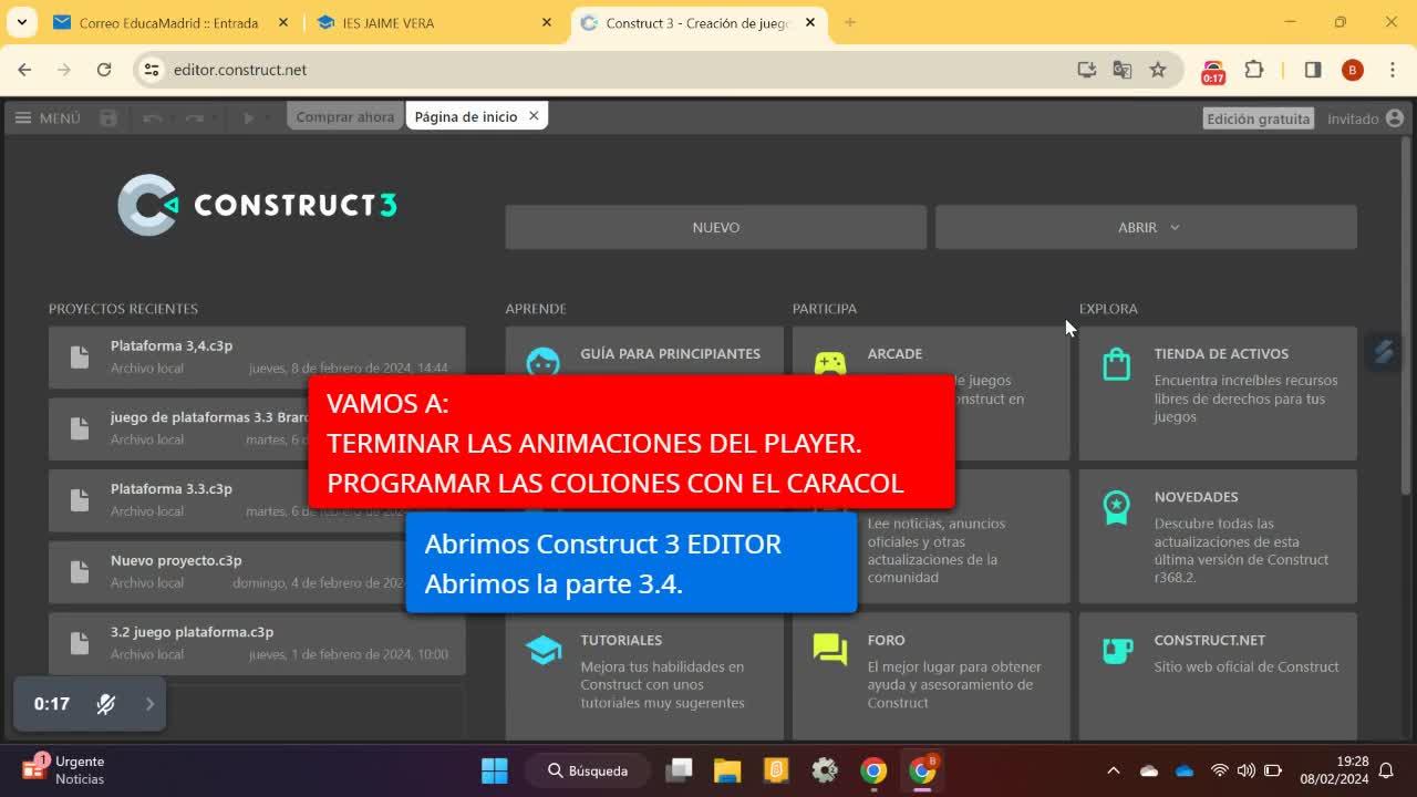 5_JUEGO DE LA PLATAFORMA_TERMINAMOS ANIMACIONES PLAYER, COLISIONES CON EL CARACOL - Contenido educativo
