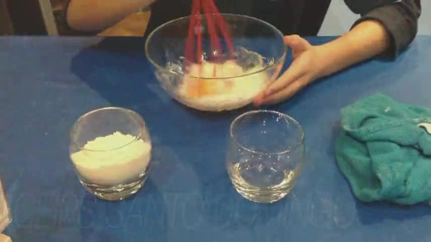 Ahora cogemos la harina con la levadura y la echamos en nuestra mezcla, sin parar de batir.