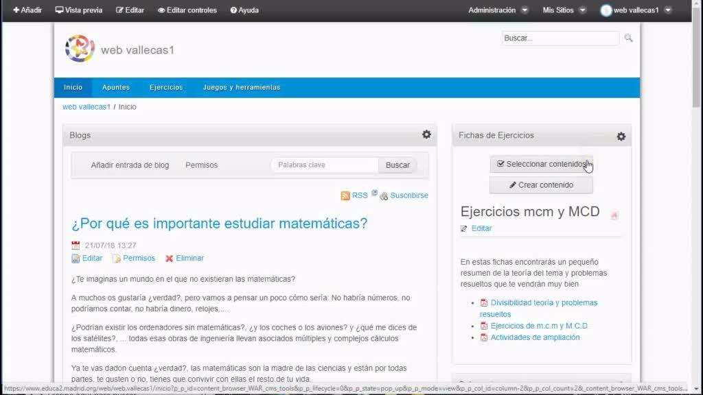 Por ejemplo, yo tengo creado aquí este contenido de ejercicios de mínimo común múltiplo y máximo común divisor