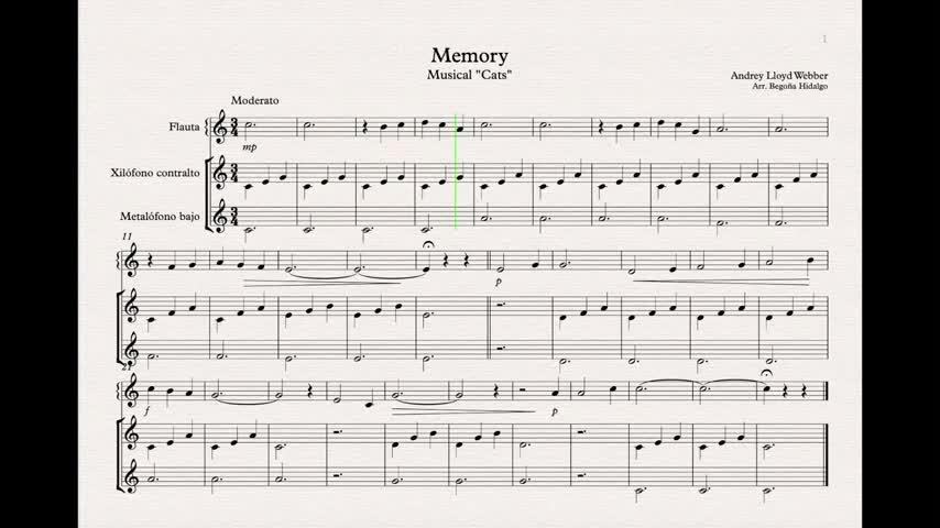 Memory. Partitura para flauta y láminas - Contenido educativo