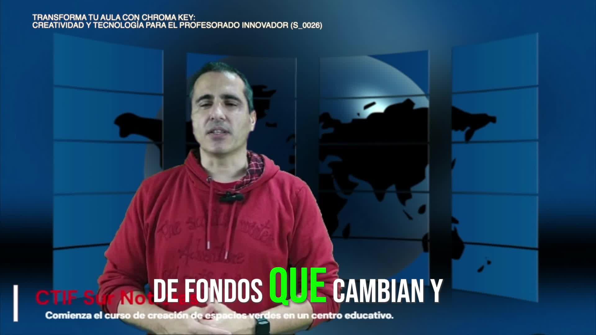 - Este vídeo es una pequeña muestra de la experiencia vivida en el curso celebrado en el CTIF SUR "TRANSFORMA TU AULA CON CHROMA KEY: CREATIVIDAD Y TECNOLOGÍA PARA EL PROFESORADO INNOVADOR (S_0026)" Donde mostramos la creatividad de los participantes del curso.