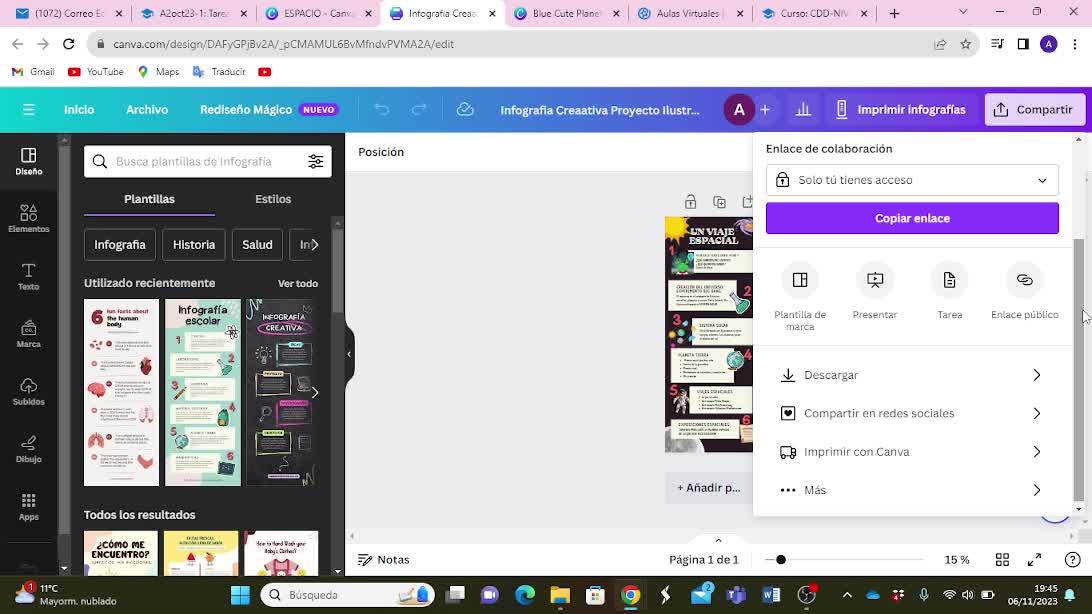 Dentro de Canva me he creado dentro de mis proyectos una carpeta con el proyecto que estoy trabajando y en relación al cual he hecho todas las tareas.