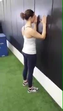 the wall, good neutral spine, engage your glutes, engage your core. You're going to