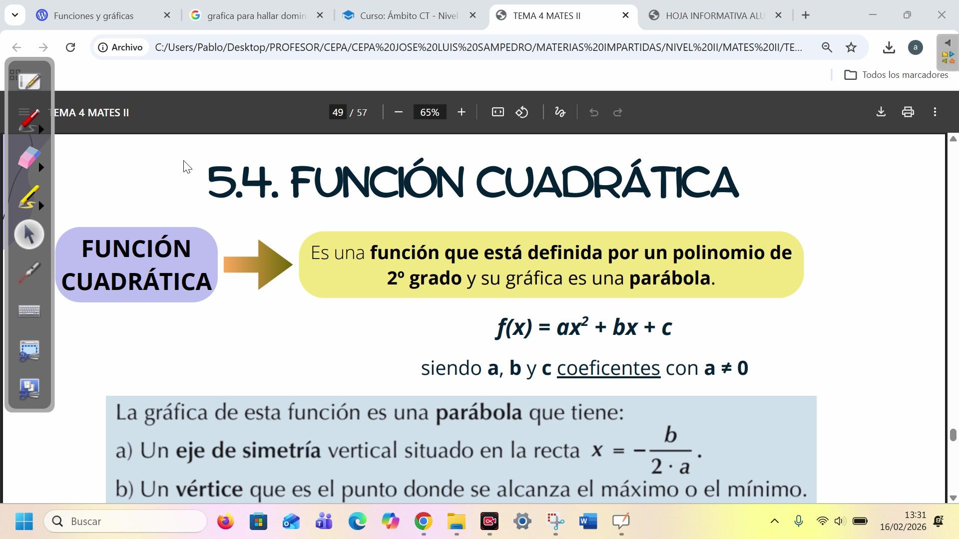 O sea, me refiero, no voy a detenerme dos clases explicando las ecuaciones de segundo grado como la otra vez, sino que simplemente voy a continuar desde donde lo dejamos con el tema 2.