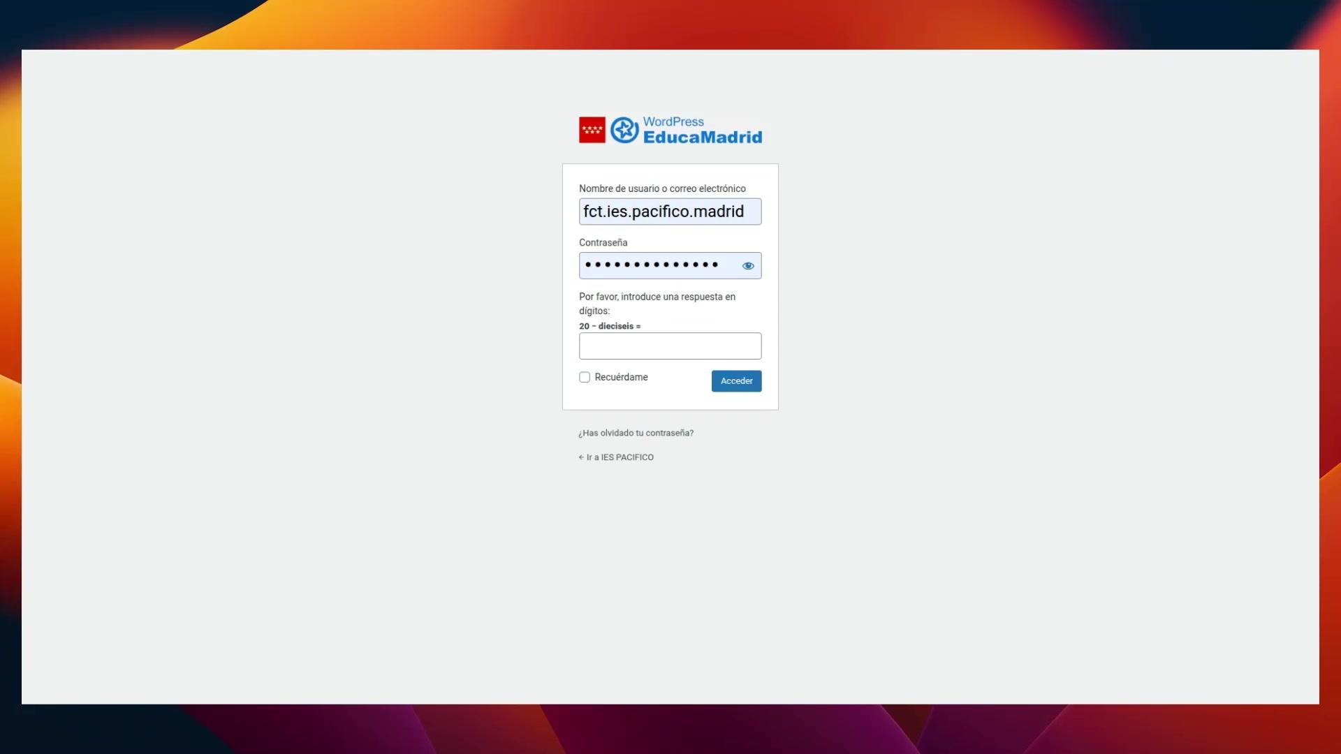 Podéis darle a recordar si queréis que guarde las cookies y no tengáis que ponerlo