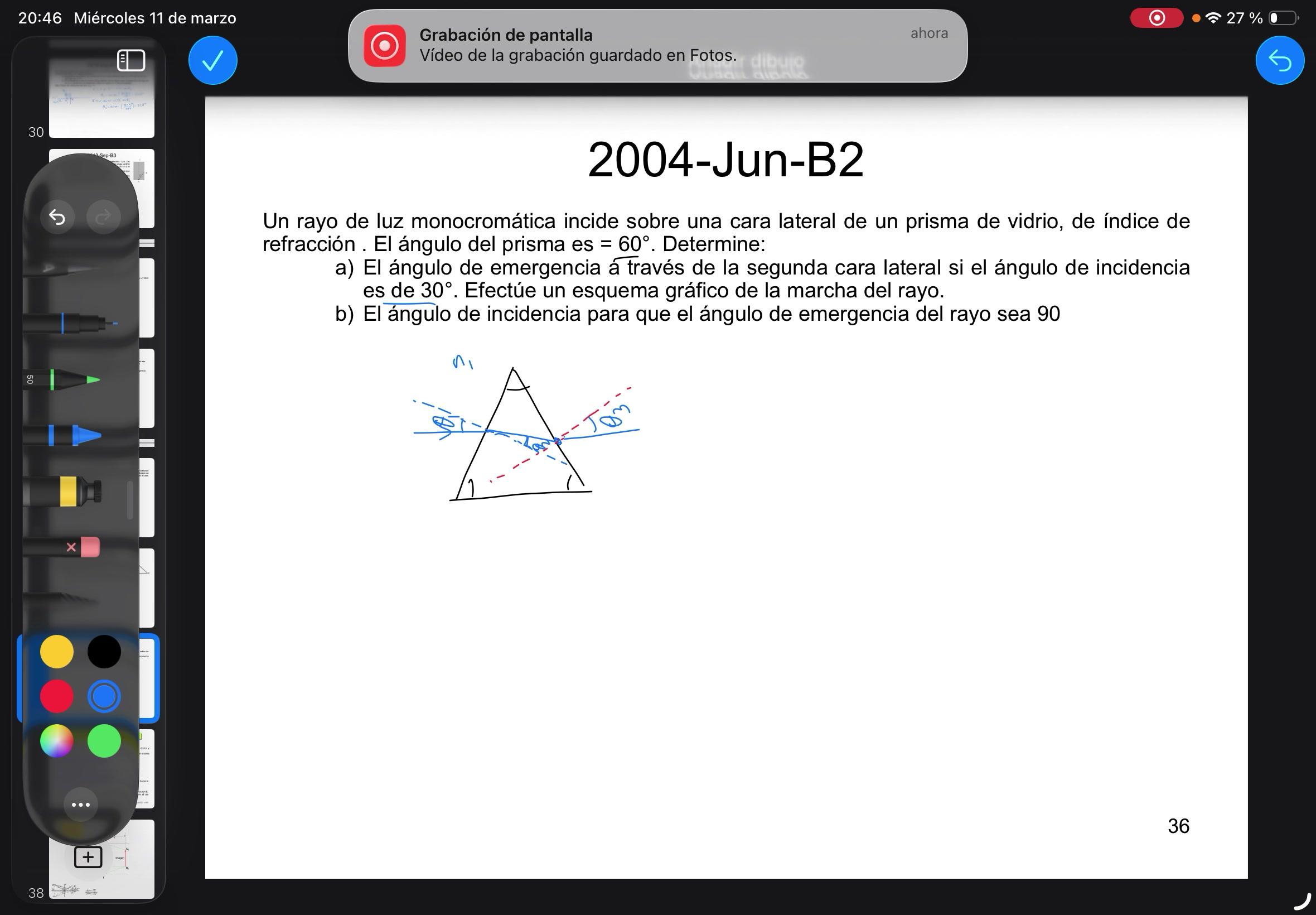 Me falta hacer el B, el ángulo de incidencia para que el ángulo de emergencia del rayo sea 90, el ángulo de incidencia para que el ángulo de emergencia del rayo sea 90.