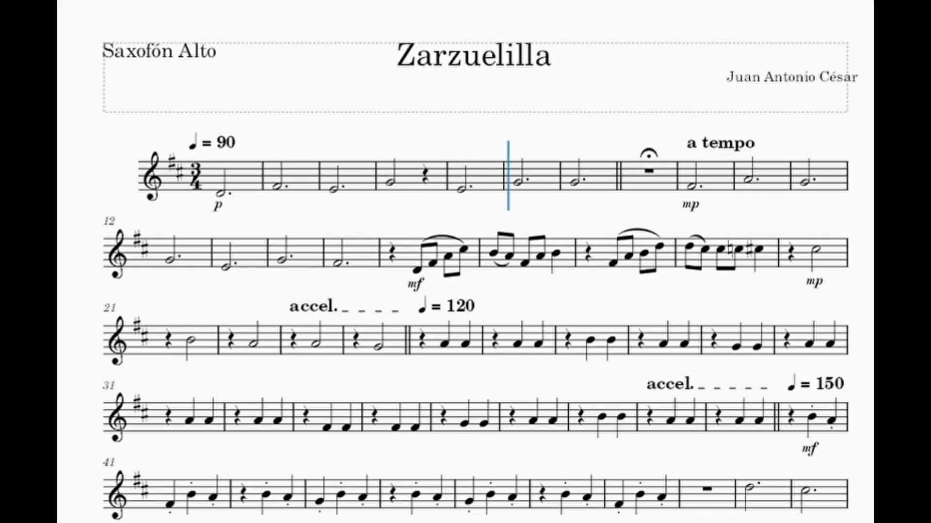 Vídeo de la partitura de Zarzuelilla para saxofón 1.