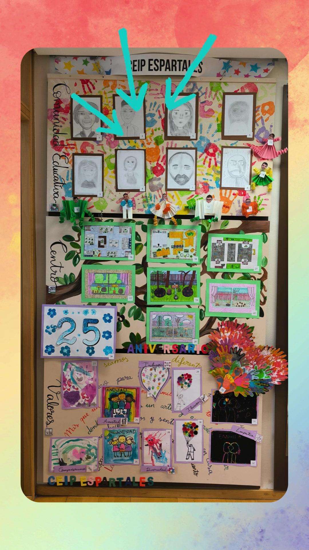Para celebrar el 25 aniversario de nuestro colegio, hemos realizado en sesiones de artística unas obras que representan los valores, el centro y la comunidad educativa.
