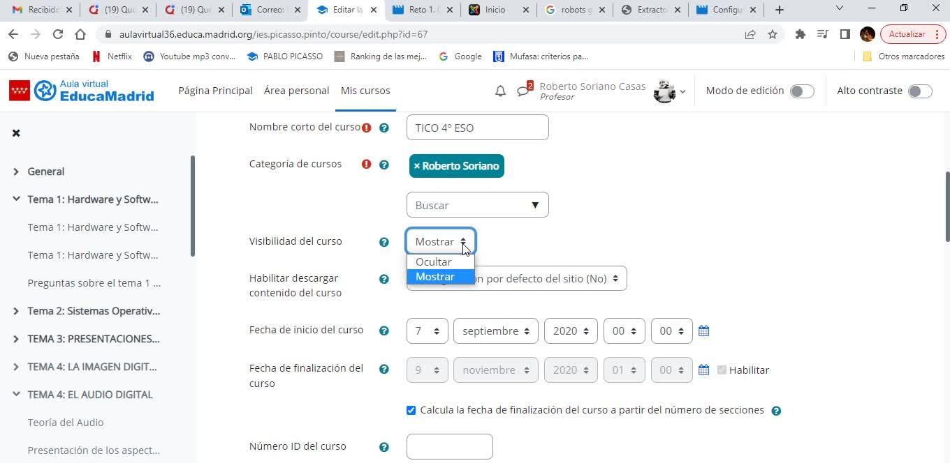 Podremos cambiar la visibilidad del curso a nuestros alumnos, a los alumnos