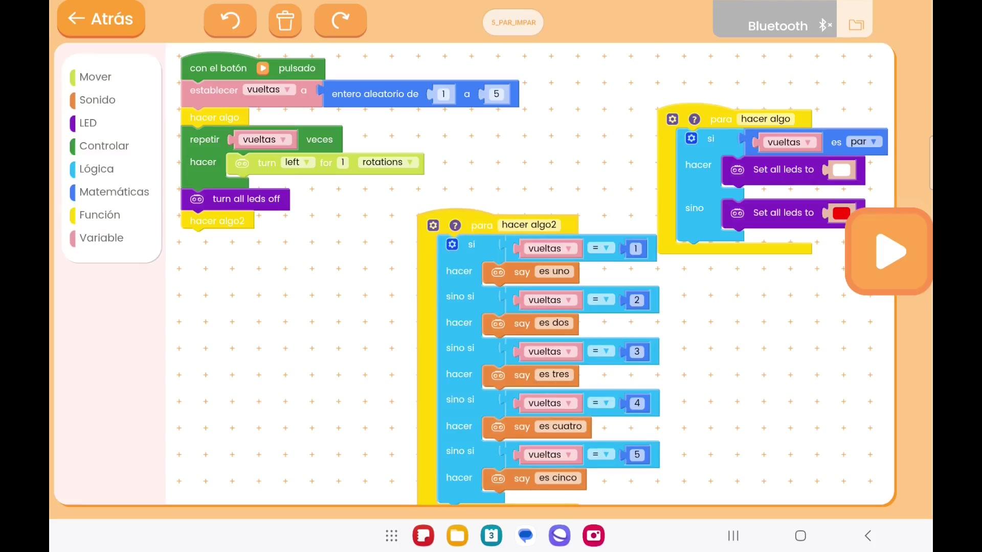 Utiliza los condicionales, luces de tu TaleBot y movimiento para trabajar los números pares e impares. Utiliza también las funciones y las variables.