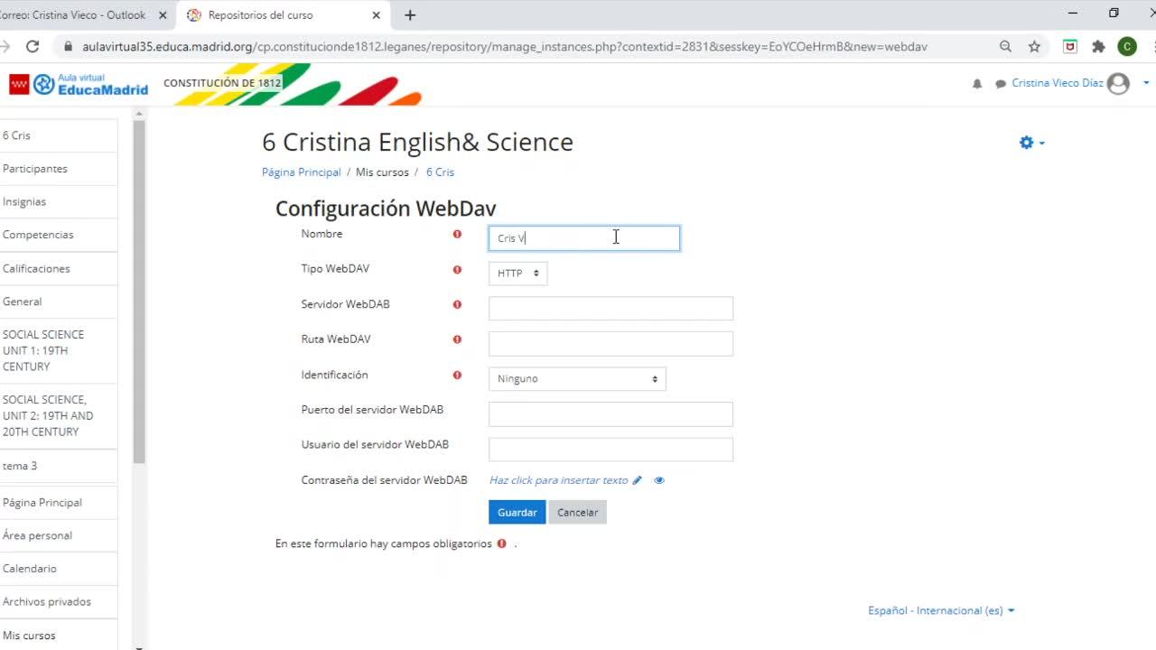 sexto A, Cristina, me pide mi usuario y mi contraseña, accedo y ya estamos en nuestra aula virtual.