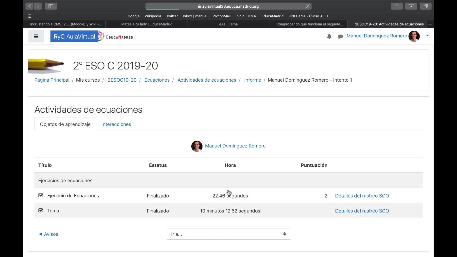 Comprobando las calificaciones del paquete SCORM en MOODLE